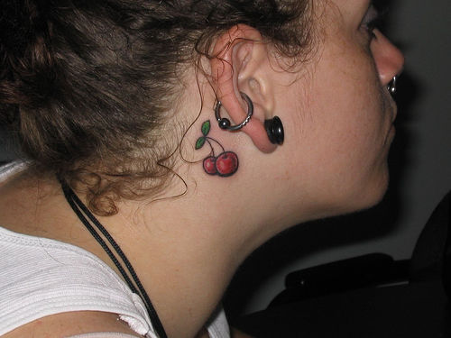Cherry Tattoos Cherry tattoo designs are extremely popular among women and are often very small in size. Cherry tattoos also possess a certain sexy seductive like quality, as they are very pleasant to the eye.
